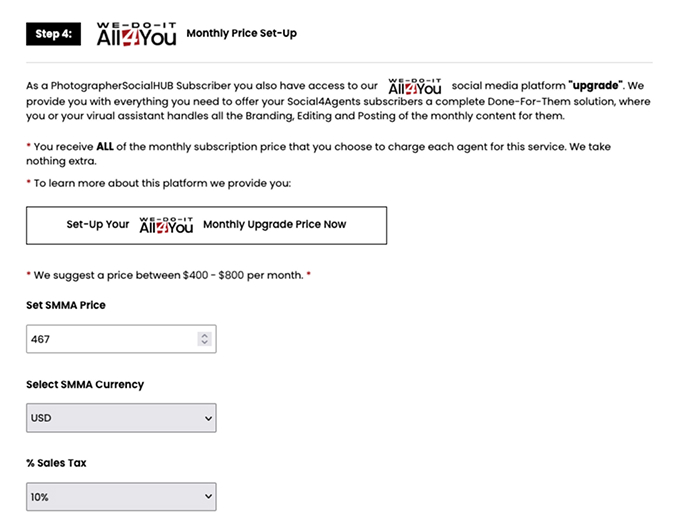 This powerful upgrade lets you provide your Social4Agents subscribers with done-for-them social media management at a premium monthly fee (we suggest $400 - $800/month per agent). And the best part? You keep 100% of the revenue.This is a brand-new opportunity for photographers to become the go-to marketing partner for agents - while building recurring monthly income like never before.